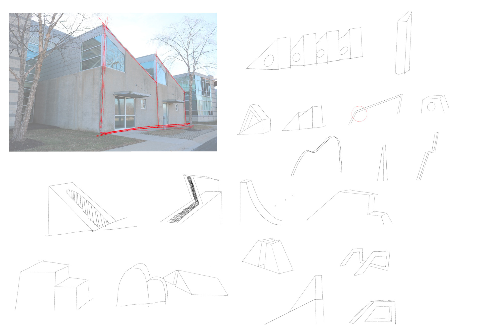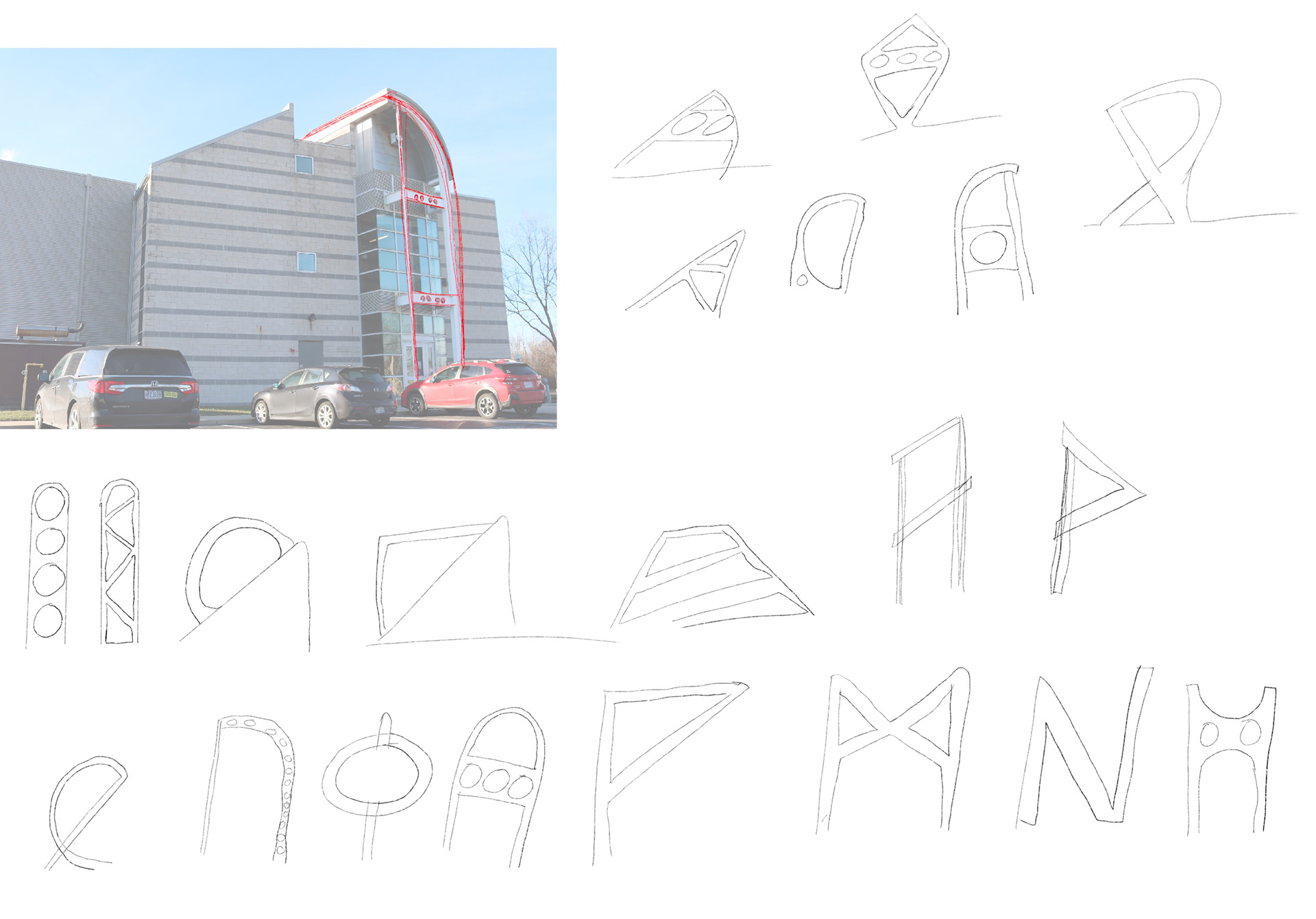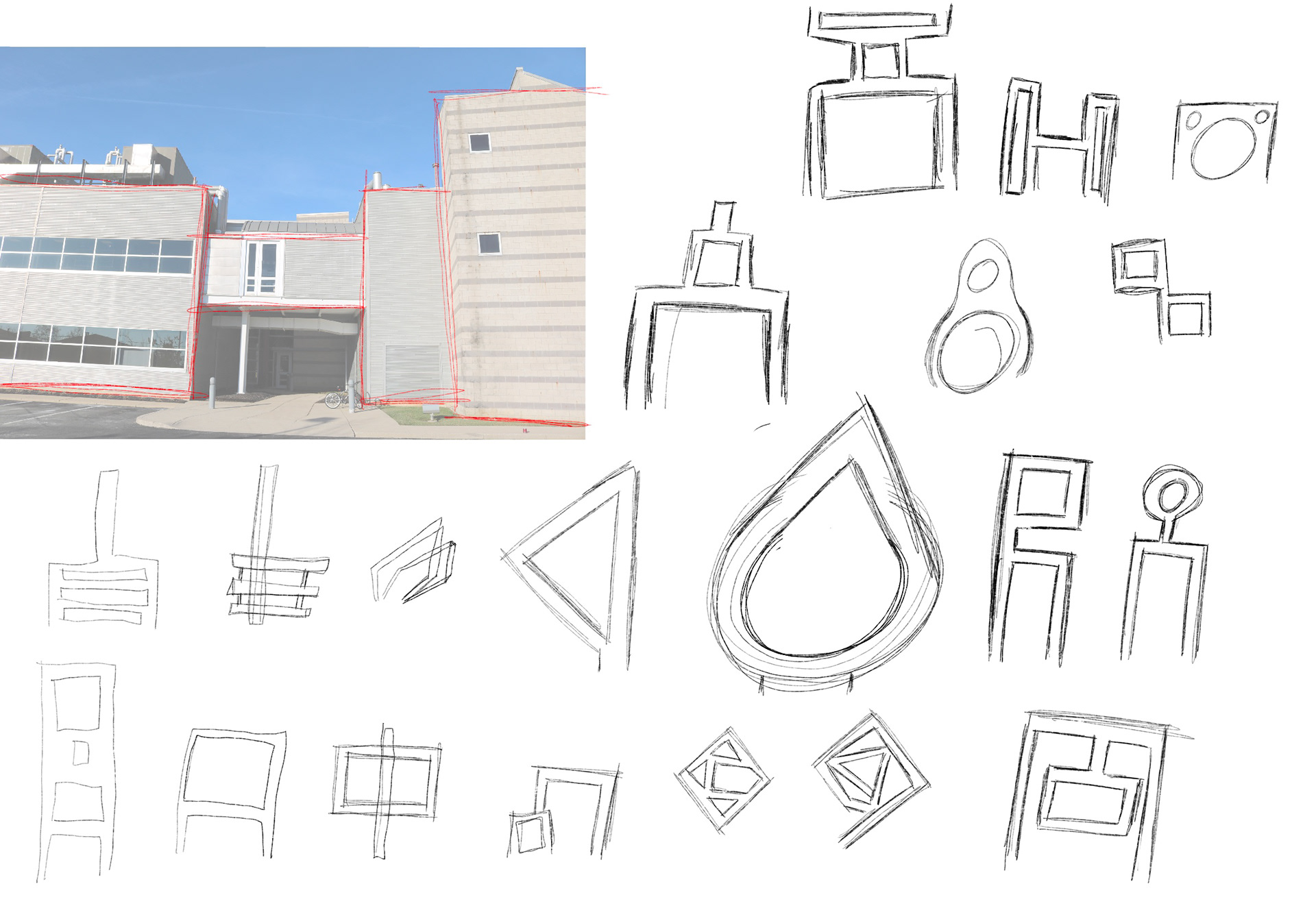 The building has many distinct features, ultimately I chose to play off of the far right image above.