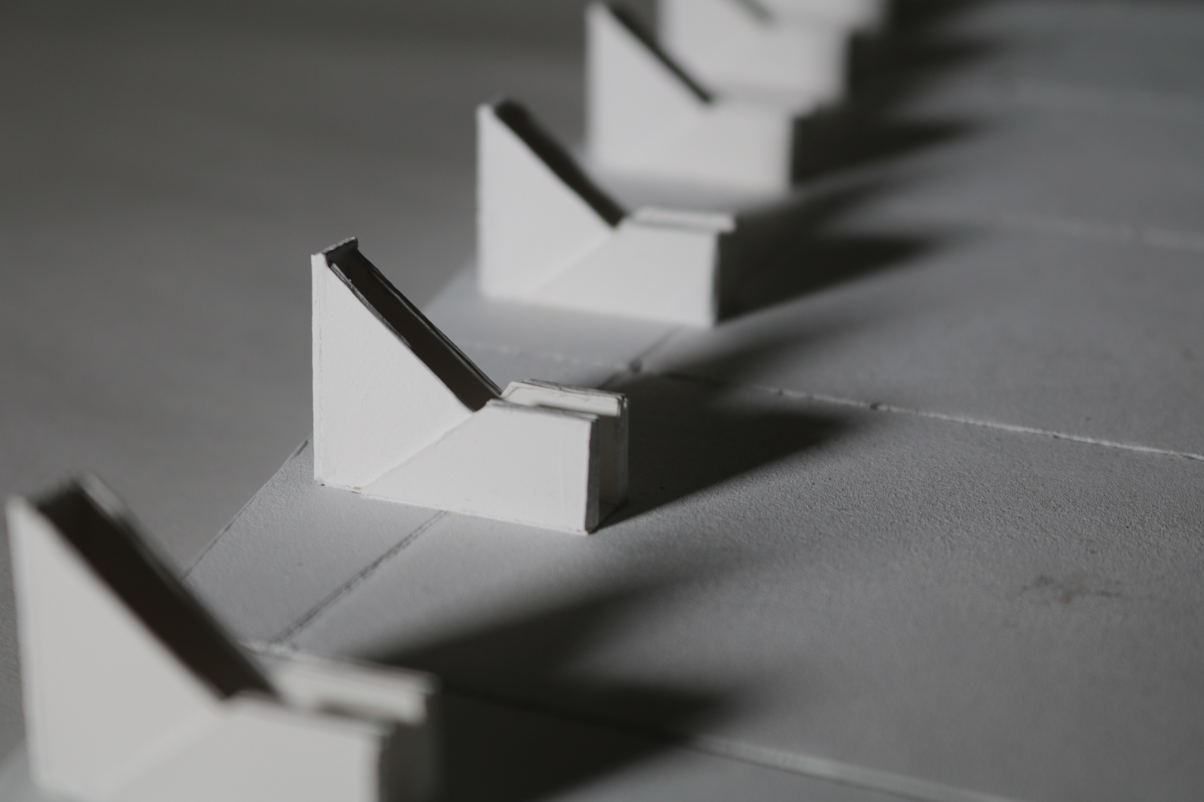 The final appearance model was made out of 180 pieces of hand-cut paper, then glue was placed on the edges of the paper stacks to keep them together.